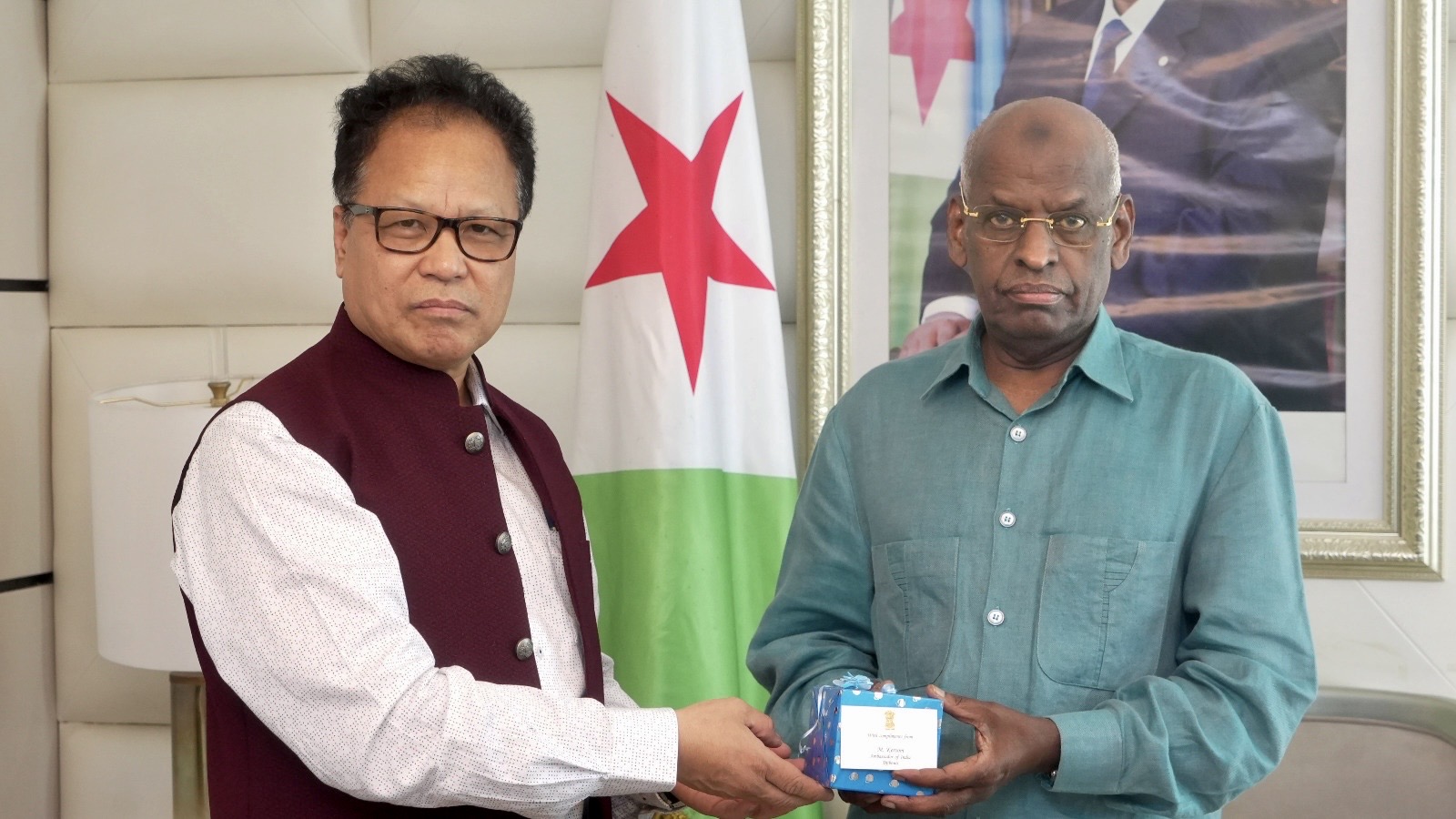 Djibouti, le 08 janvier 2026 — Le Premier ministre, Son Excellence Monsieur Abdoulkader Kamil Mohamed, a reçu ce jour, dans le Salon d’honneur de la Primature, la visite de courtoisie de l’Ambassadeur résident de la République de l’Inde à Djibouti, S.E. Shri Malsawmthang Keivom.